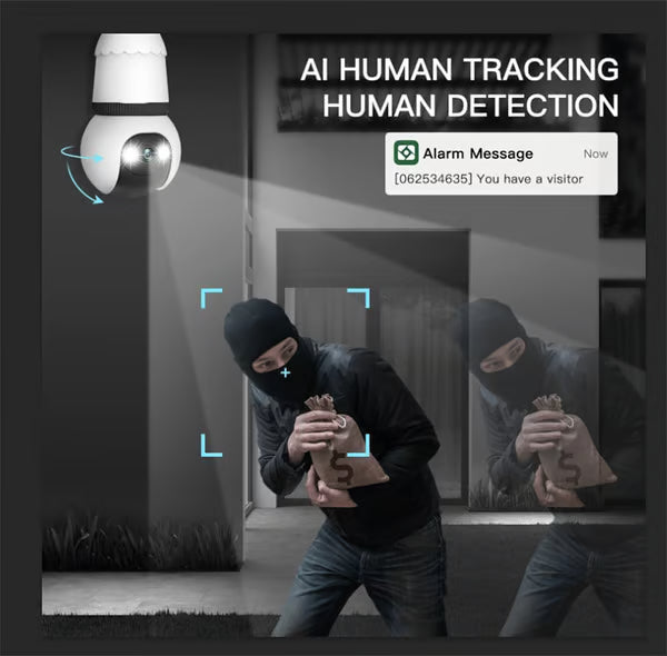 2MP Light Bulb Security Camera 2.4GHz Wireless Outdoor Indoor Camera with Night Vision
